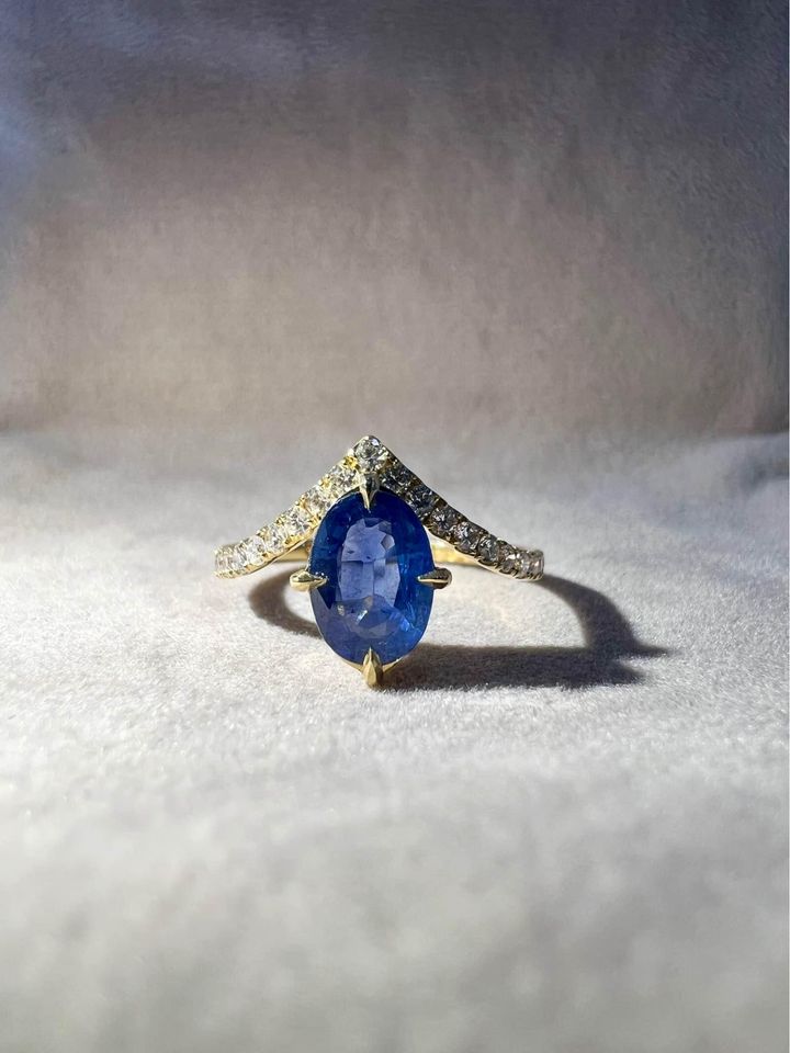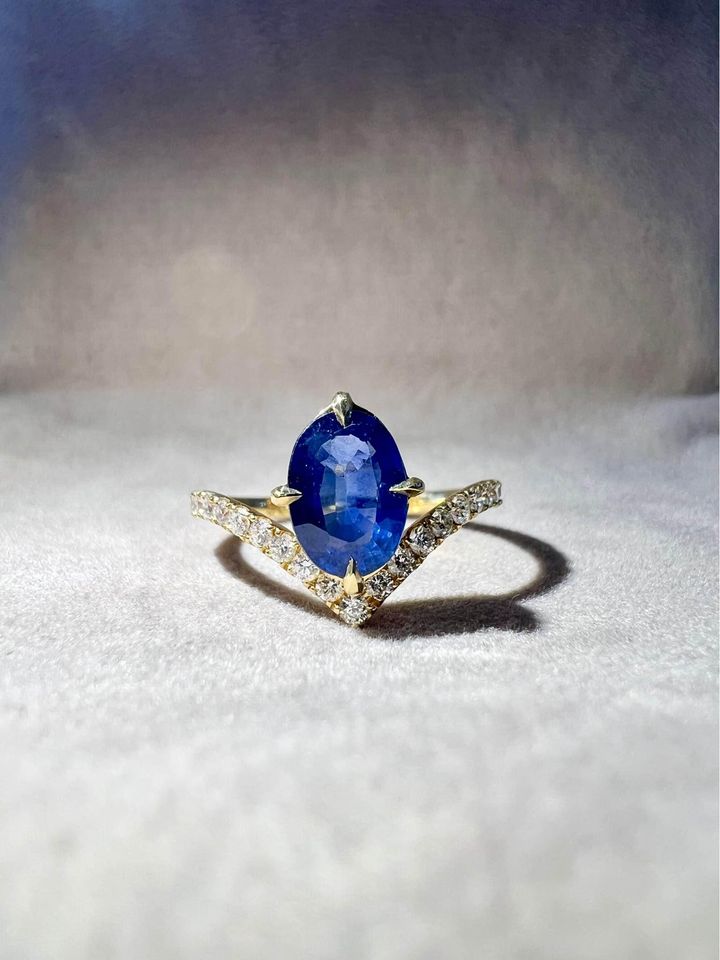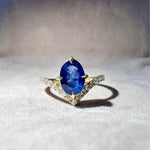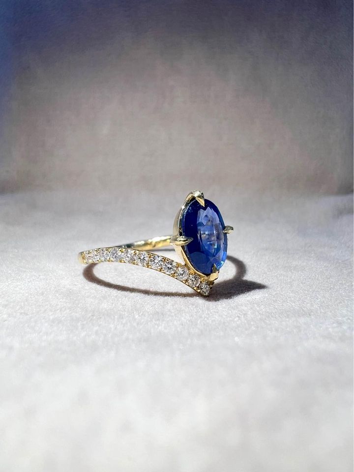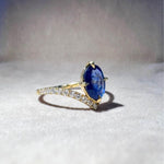 18ct Yellow Gold Natural Blue Sapphire Diamond Ladies Dress Ring now on sale