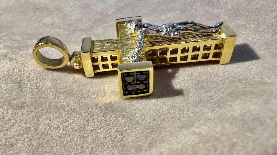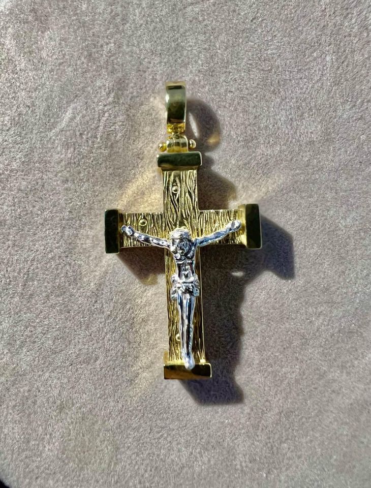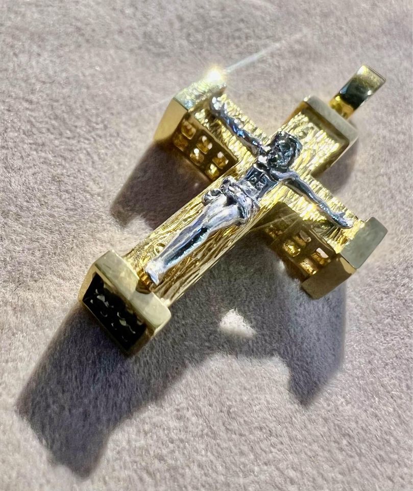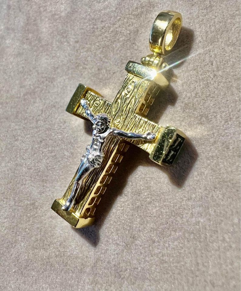 18k Gold Two Tone Crucifix Pendant A07T03