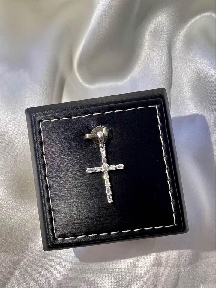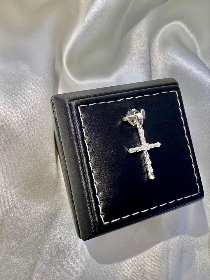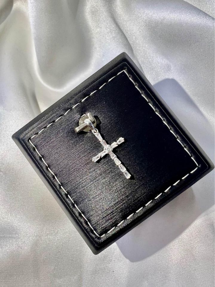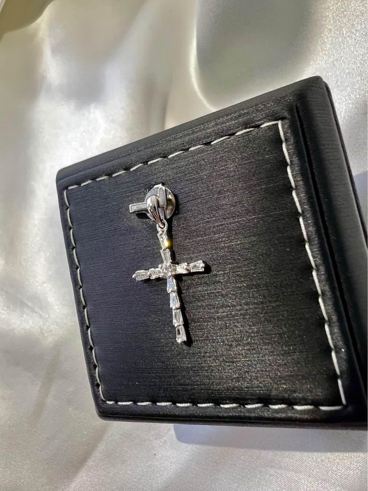18k White Gold Natural Diamond Cross Pendant Set TDW 0.12ct DC4