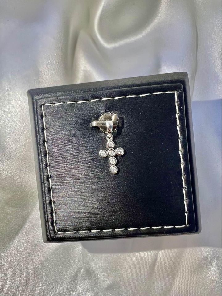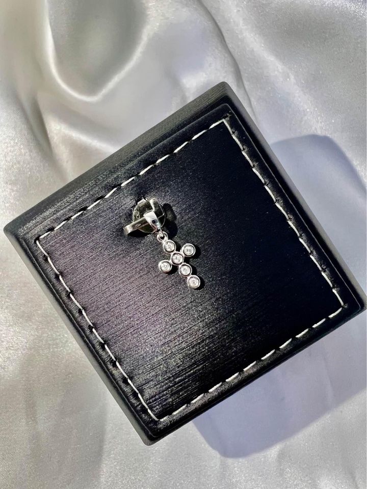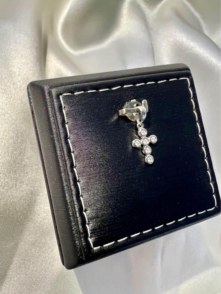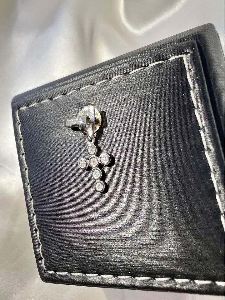 18k White Gold Natural Diamond Cross Pendant Set TDW 0.04ct DC11