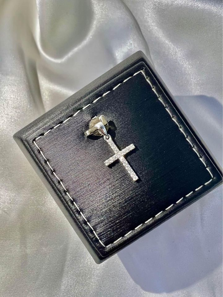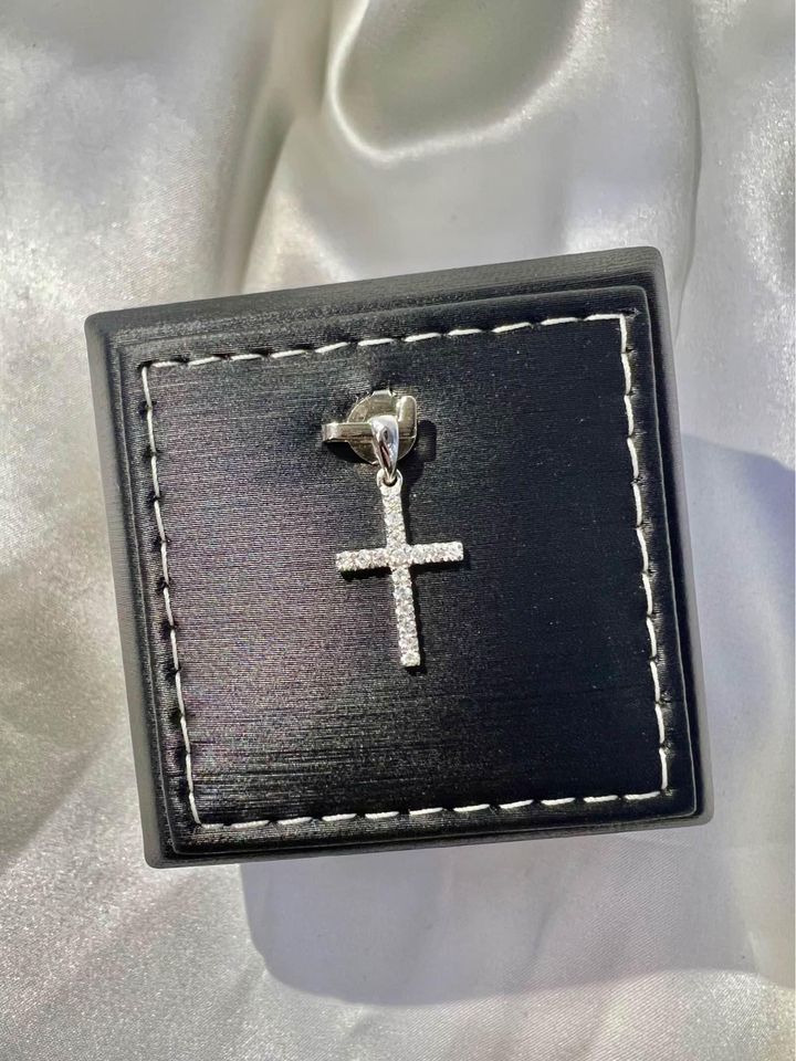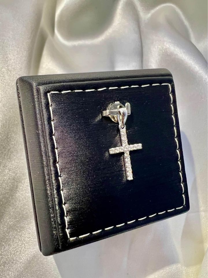 18k White Gold Natural Diamond Cross Pendant TDW 0.10ct DC9