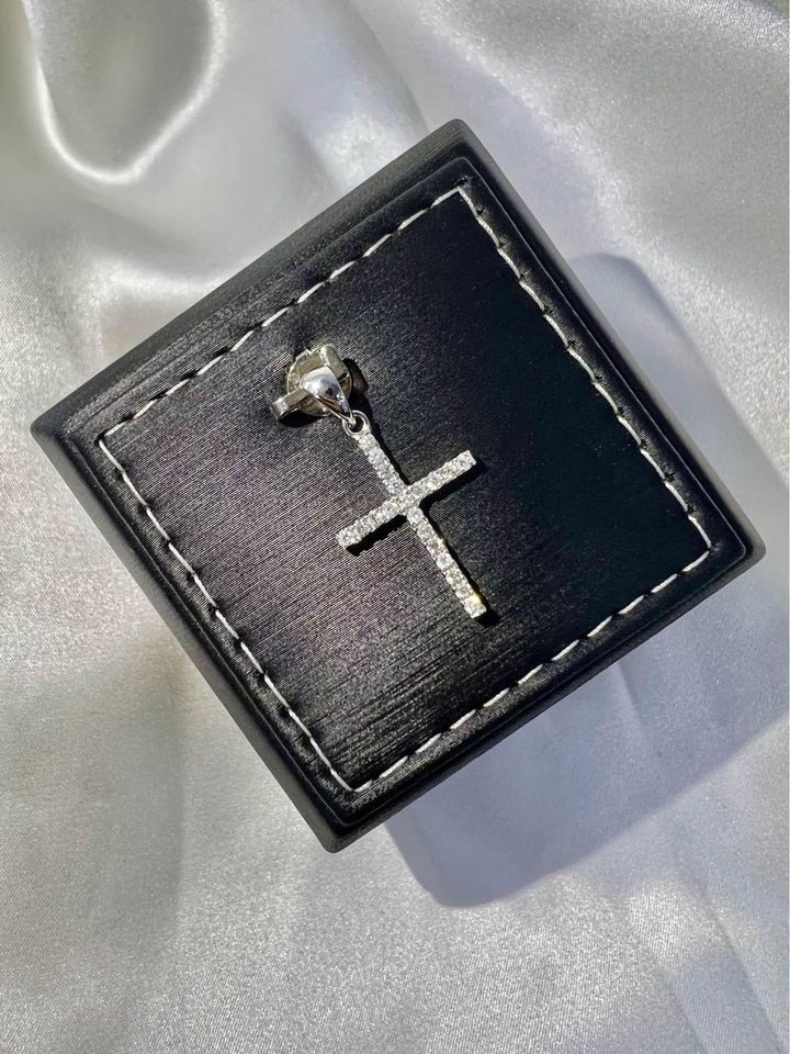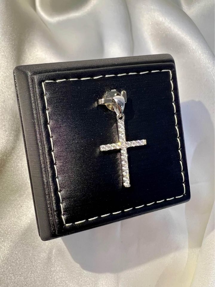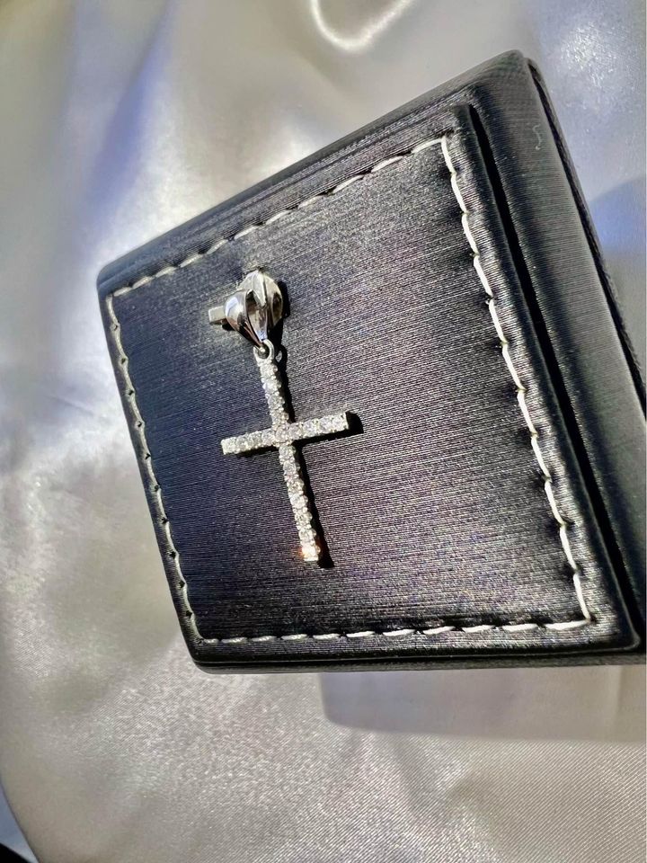 18k White Gold Natural Diamond Cross Pendant TDW 0.15ct DC7