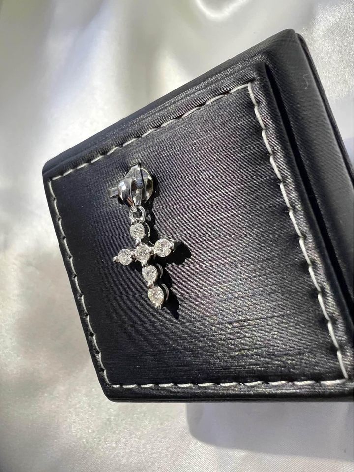 18k White Gold Natural Diamond Cross Pendant TDW 0.30ct DC6