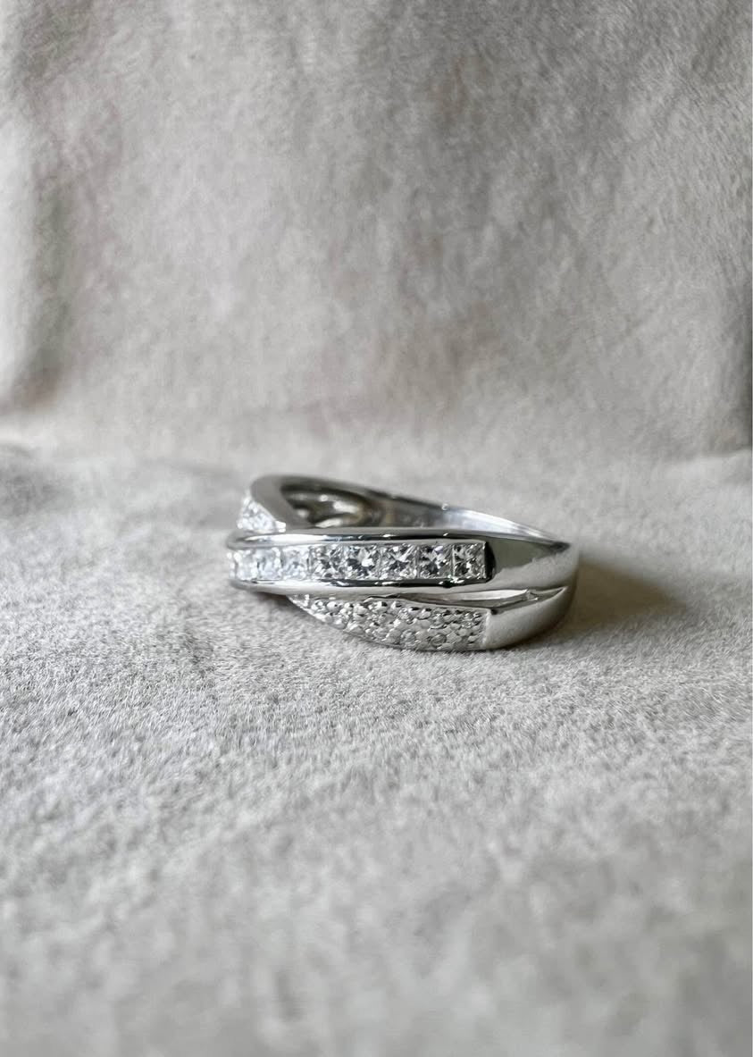 18K White Gold Natural Diamond Ring Round Brilliant & Princess Cut Diamonds