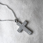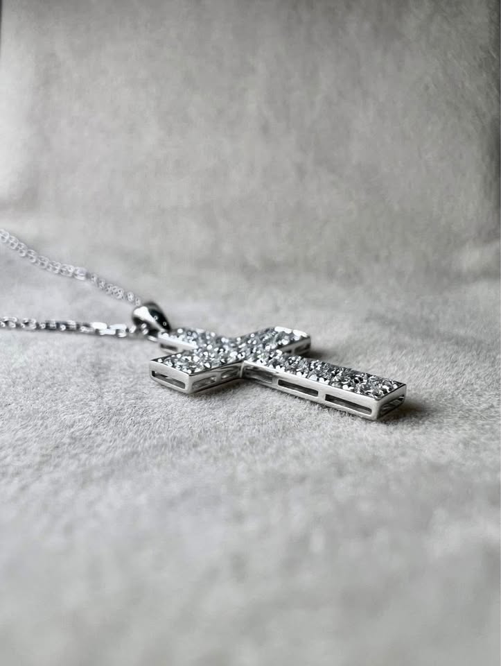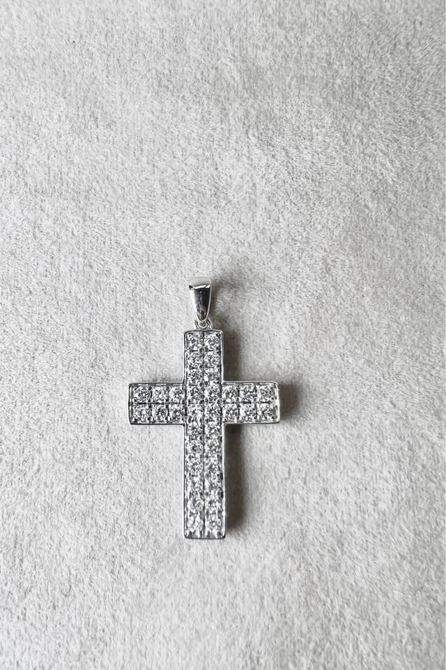 10K White Gold Lab Grown Diamond Cross Pendant Round Brilliant Cut Diamonds