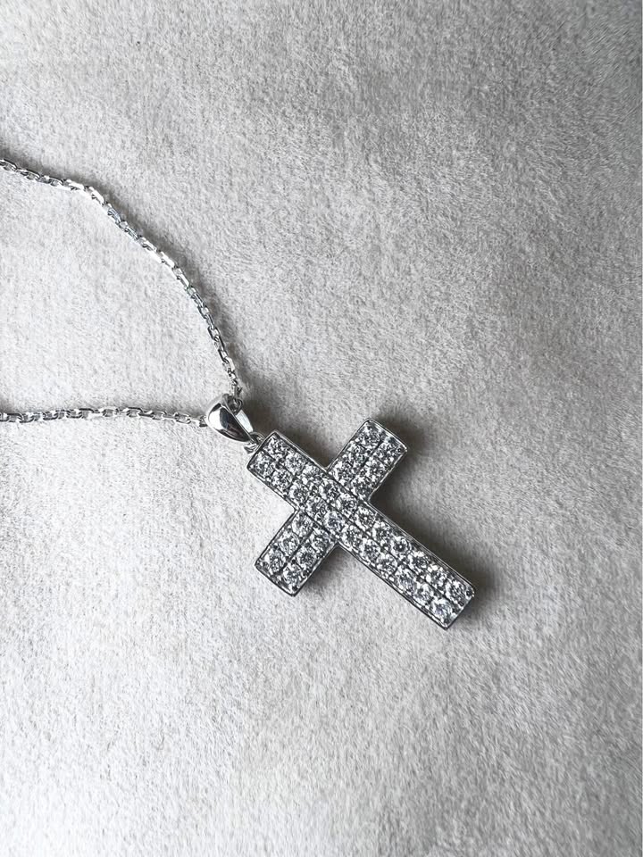Beautiful 10K White Gold Lab Grown Round Brilliant Cut Diamond Cross Pendant for Sale TDW 0.61ct