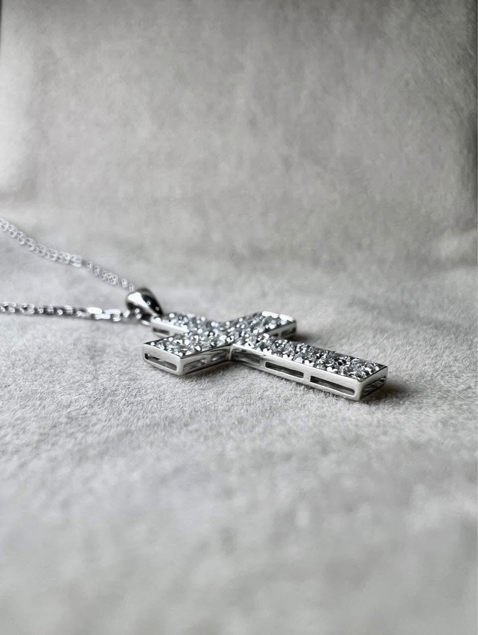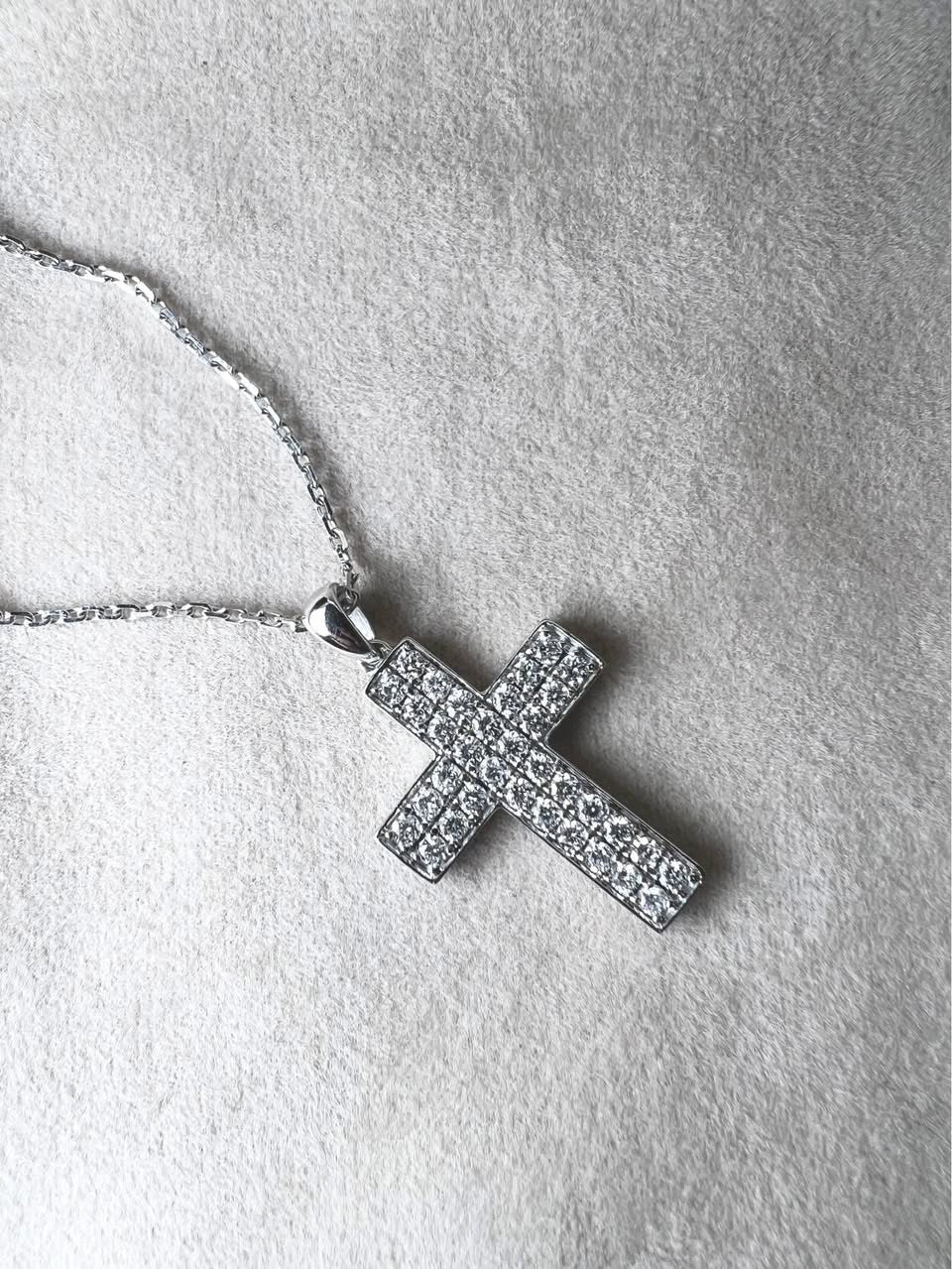 Divine 10K White Gold Lab Grown Round Brilliant Cut Diamond Cross Pendant for sale TDW 0.61ct
