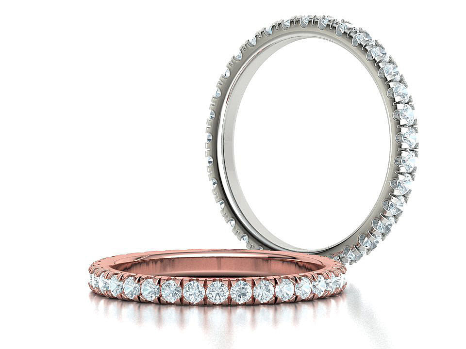 The eternity band is a symbol of everlasting love and commitment, characterized by a continous band of diamonds that encircle the finger. This exquisite piece of jewelry holds a special place in the world of romance, signifying an unbroken bond and a promise of eternal togetherness.