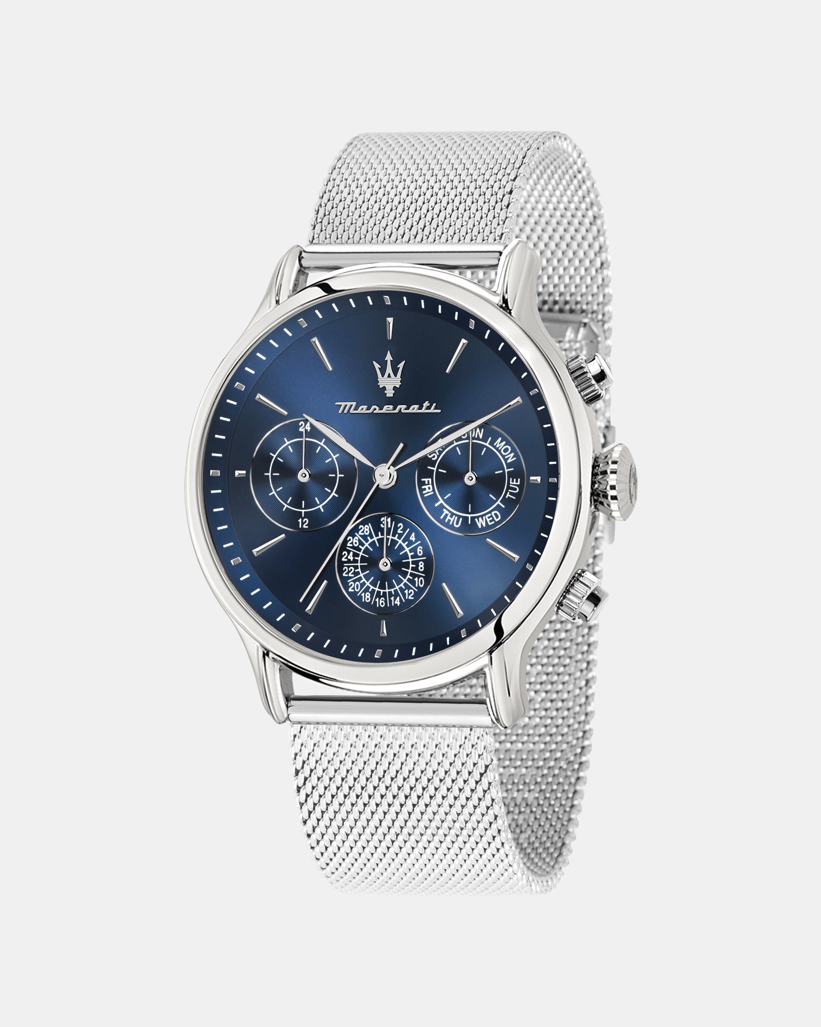 The Epoca watches are inspired by the design of the Maserati 3500 GT of 1957, a symbol of style and mechanics excellence. The vintage soul of this collection can be found also in other details: from the Trident logo in its very first version used on a Maserati vehicle - the Tipo 26 of 1926 - to the dial rounded shape that characterised the mechanical watches from the Forties and Fifties.