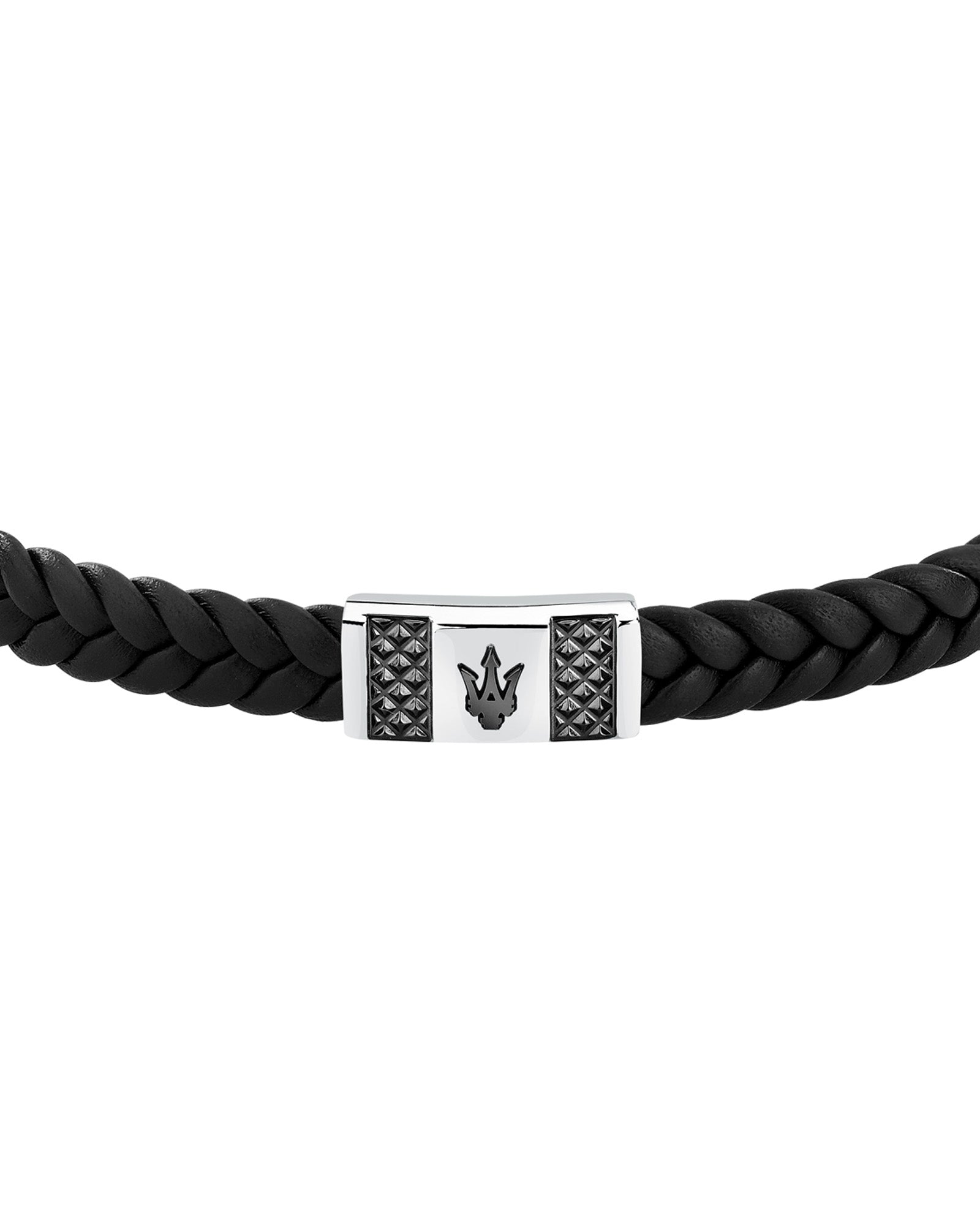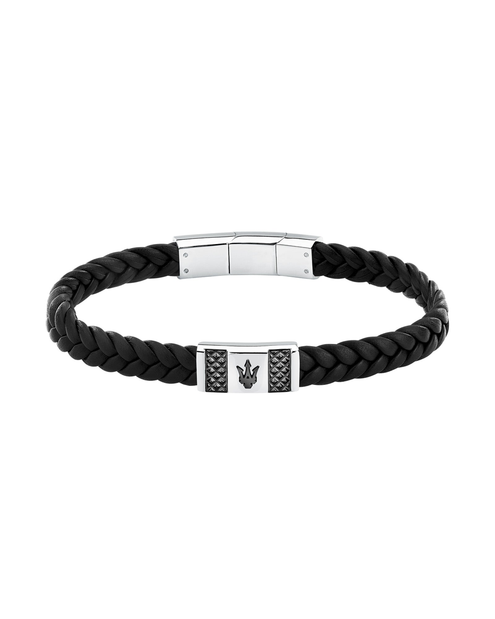 Maserati Men's Gun Metal Leather Bracelet JM424AVE25