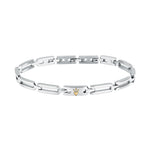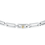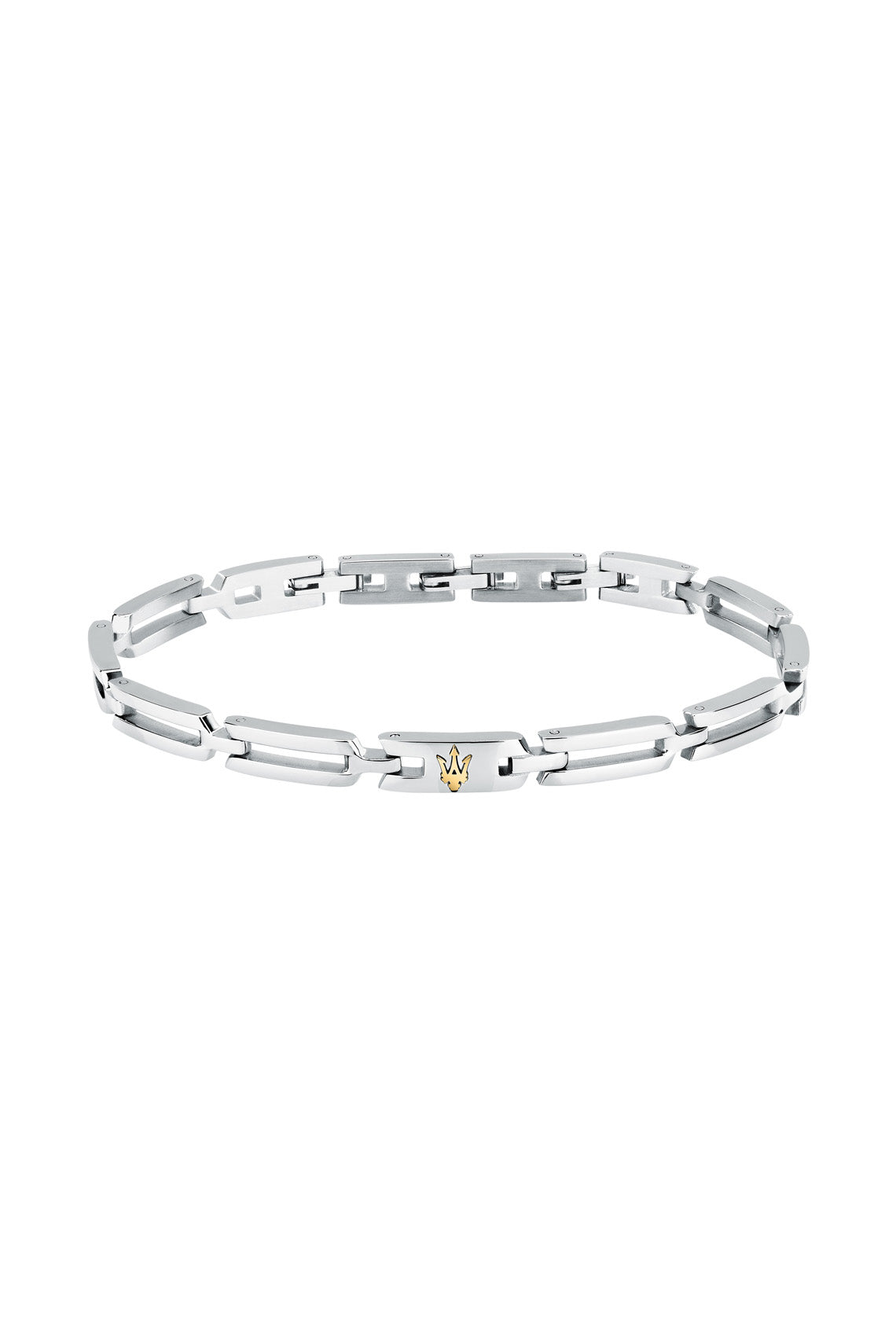 The Maserati Jewels Men's Bracelet (JM424AVD74) exudes bold sophistication with its polished stainless steel design and gold logo. Adjustable for comfort, it’s the perfect blend of modern elegance and iconic style.