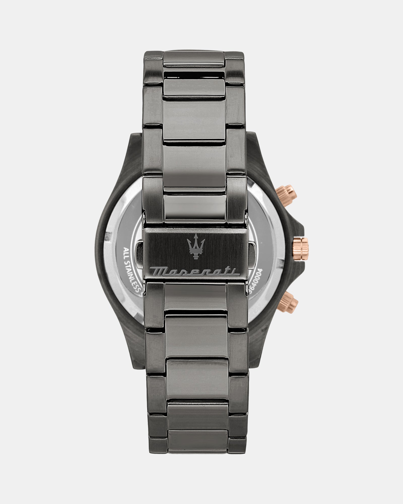 The Maserati Sfida Collection consists of watches with sporty elegance, characterized by a structured design, steel case (44mm) with rotating or tachymeter bezel, knurling finish on one side. The sunray effect or modern dégradé dials offer elegance and rigour, distinctive features of Maserati maison. The new models from Sfida collection are based on Maserati's values and sporting heritage. Detailed watch constructions and colour nuances enhance the super luxury brand DNA.