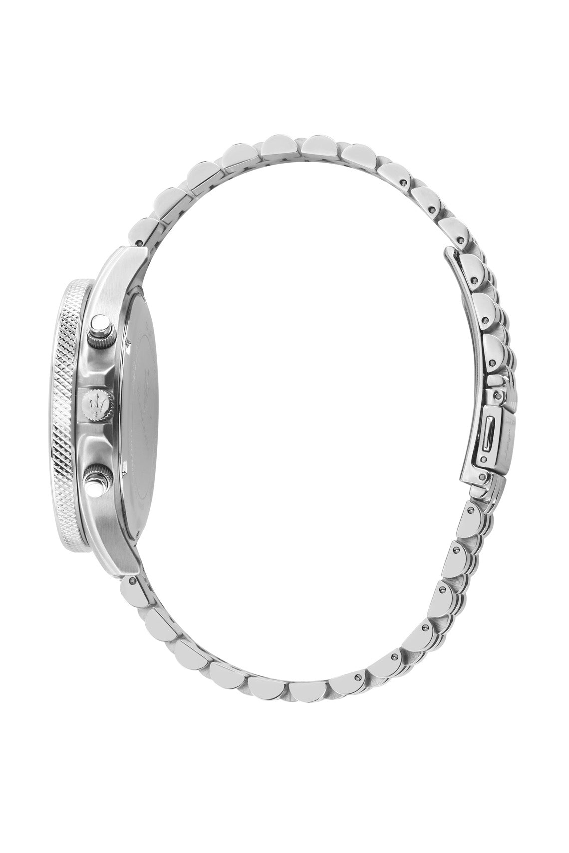 Maserati Sfida is a practical accessory for men. It will look great with both casual and elegant outfits. The heart of the watch is a precise automatic movement. The case is made of stainless steel of high quality covered with a black coating.A silver bracelet made of steel is easy to use and perfectly matches other elements of the watch. The black dial is covered by a mineral crystal, which is renowned for its high resistance to shocks and scratches that are caused during everyday use. A water resistance of 100 meters means the watch can be worn when swimming and freediving.