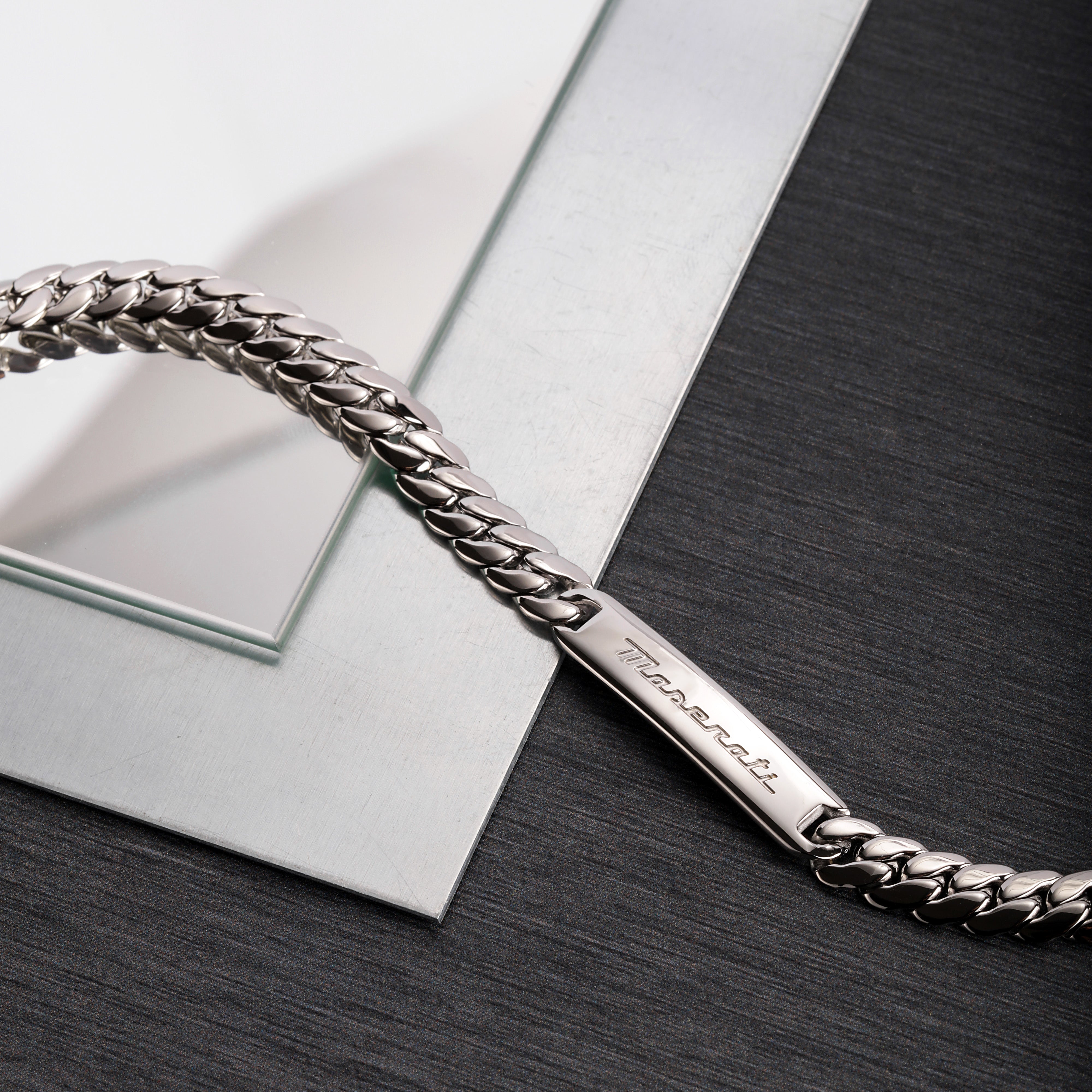 The Maserati Bracelet, a fusion of elegance and automotive prestige. Crafted from high-quality stainless steel, this bracelet exudes durability and refinement. With its sleek design and iconic Maserati branding, it's the perfect accessory for enthusiasts and fashion-forward individuals alike.