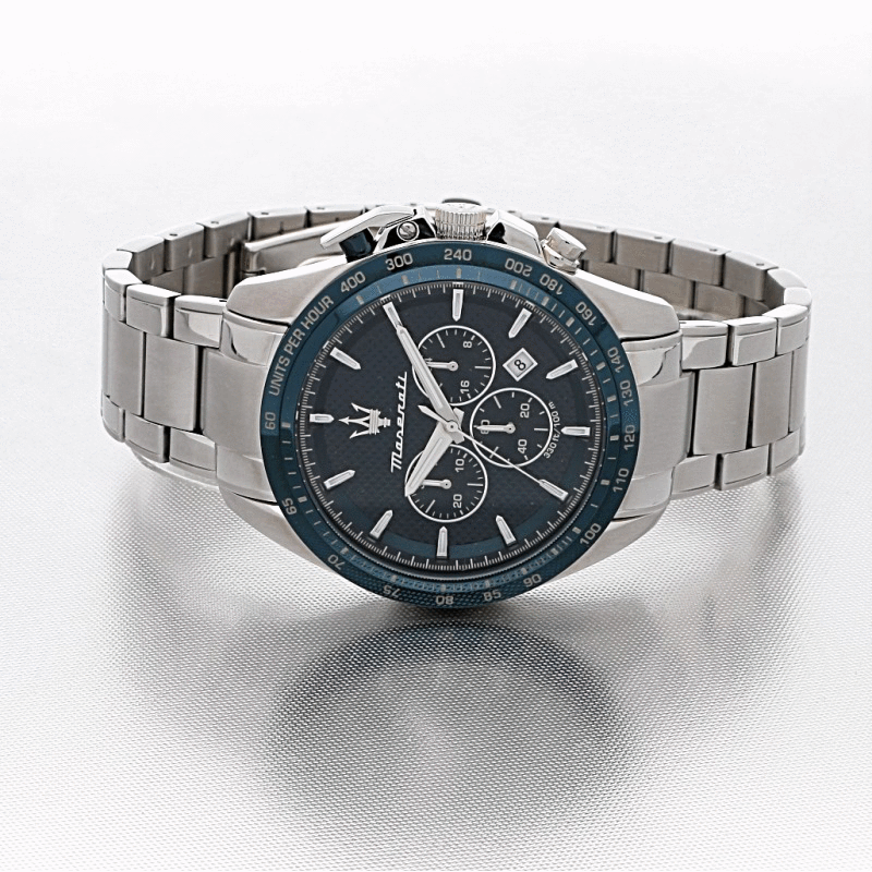 Presenting the Maserati Traguardo 45mm Stainless Steel Chronograph Watch.