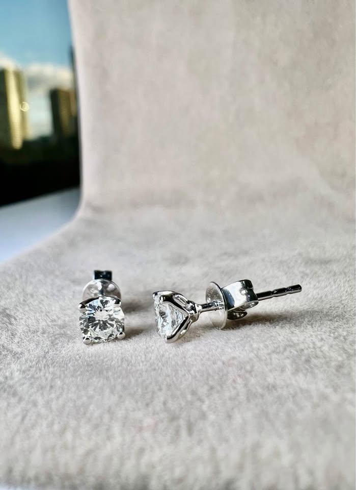 10K White Gold Lab Grown Diamond Earrings Round Brilliant Cut Diamonds