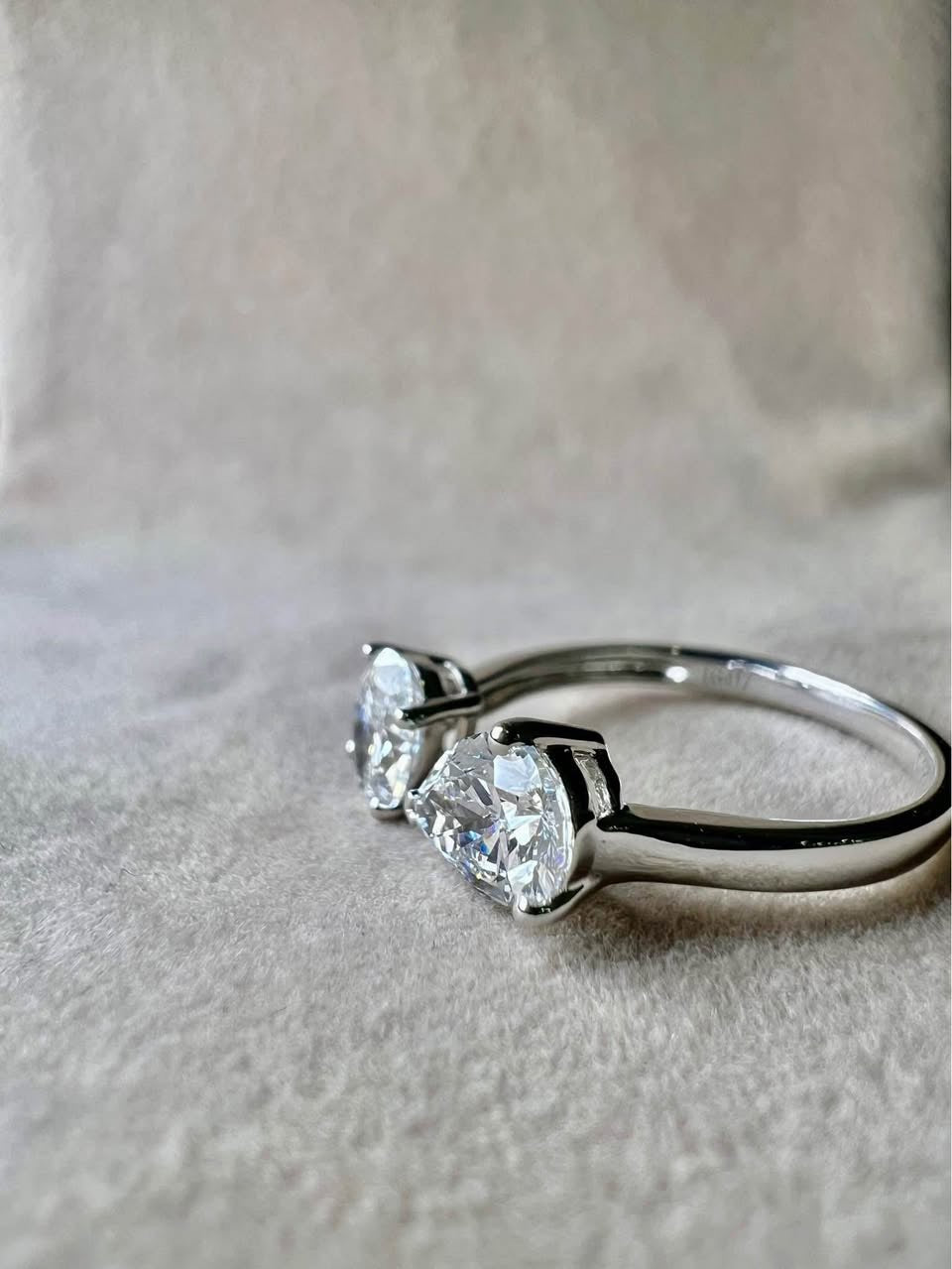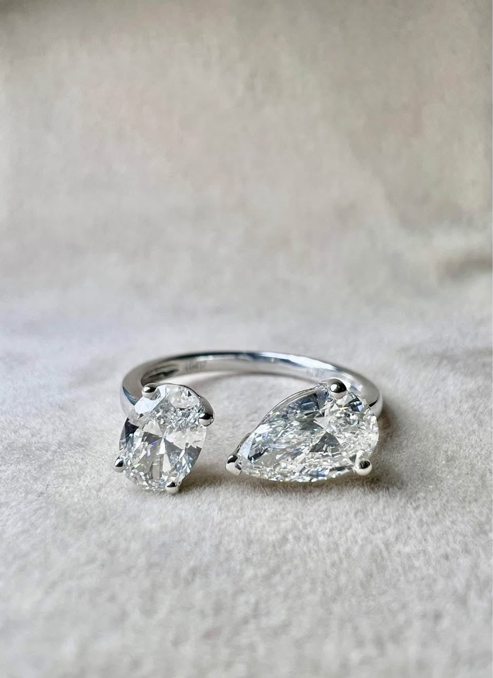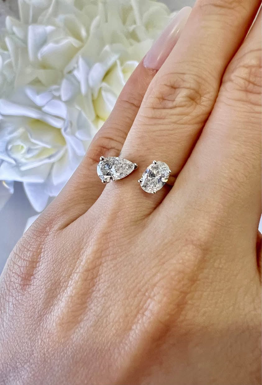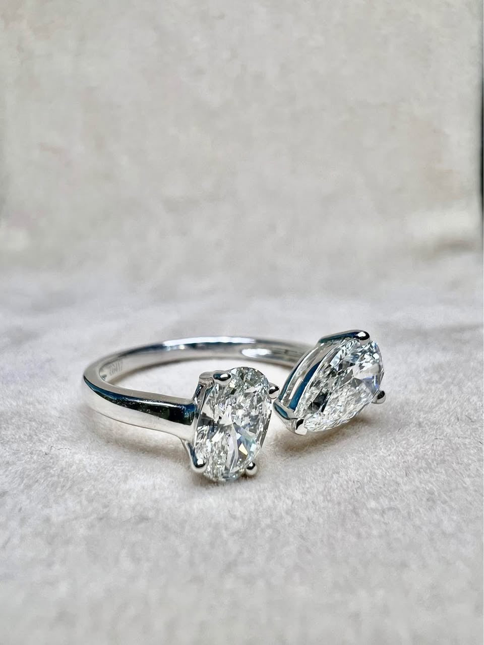 10K White Gold Lab Grown Diamonds, Pear 0.83CT and Oval 0.55CT D/VVS