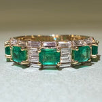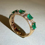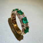 18K Yellow Gold Emerald and Diamond Ladies Ring Alternating Design
