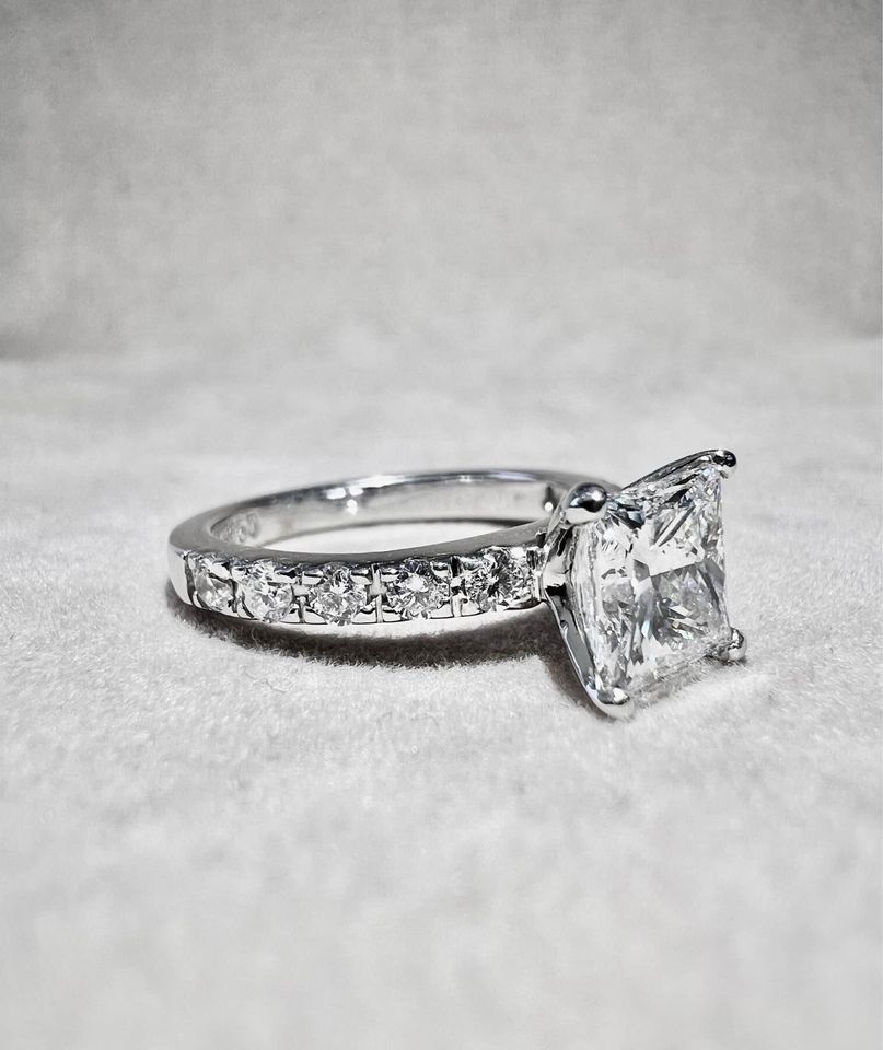18ct White Gold Natural Princess Cut 1.51ct E/SI1 Diamond Engagement Ring DCLA