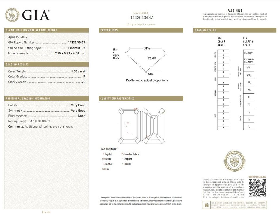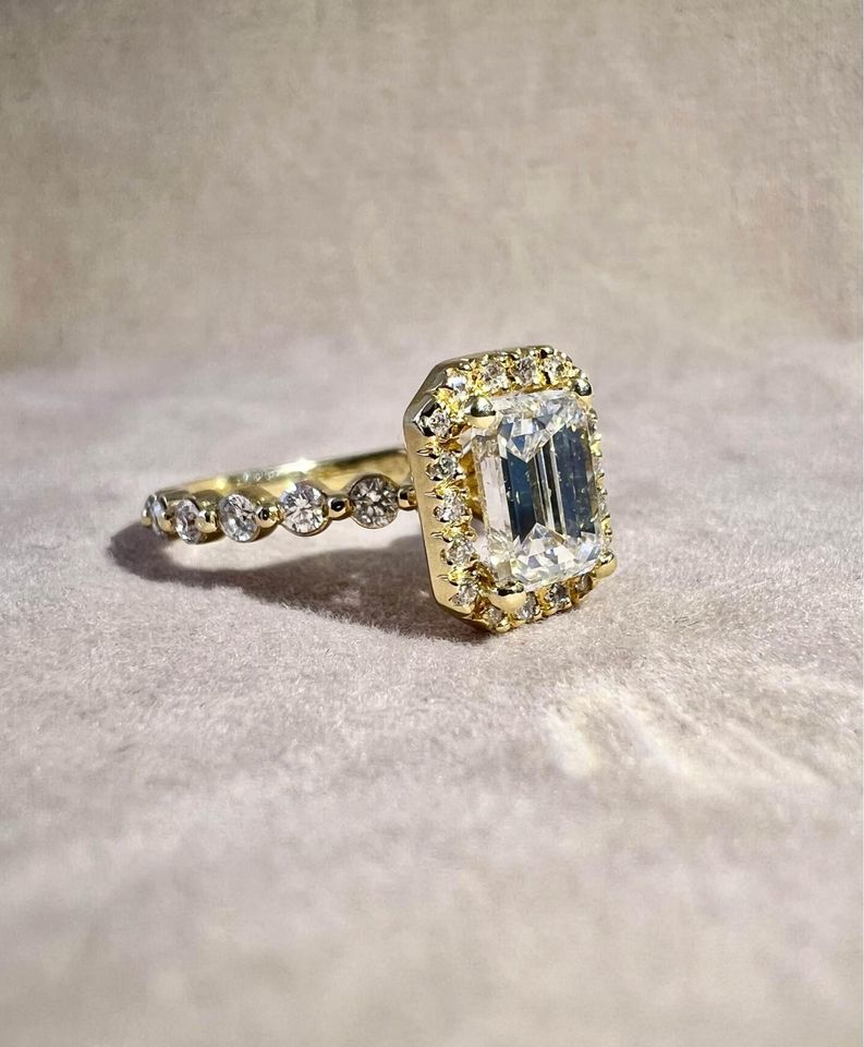 18ct Yellow Gold Natural Emerald Cut 1.50ct F/SI2 Diamond Ladies Engagement Ring GIA