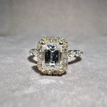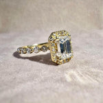 18ct Yellow Gold Natural Diamond Ring For Sale, Featuring Double Halo & Diamond Shoulder Band