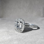 18ct White Gold Lab Grown Diamond Ring For Sale, Featuring Single Halo & Diamond Band