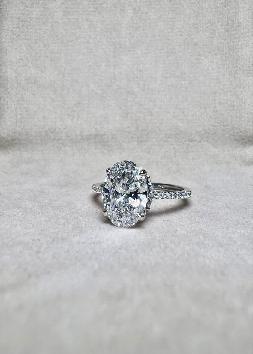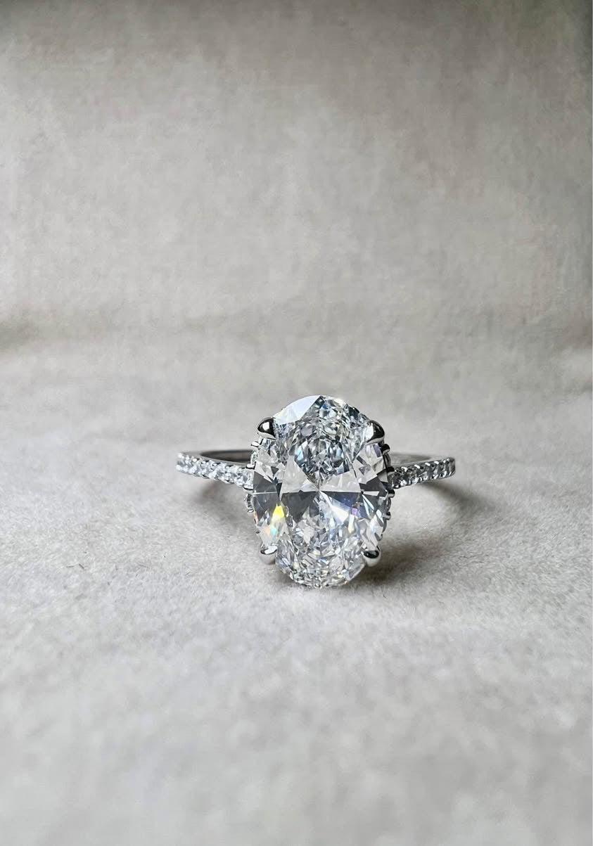 18K White Gold Engagement Ring Lab Grown Diamond Oval 2.04ct E/VS1