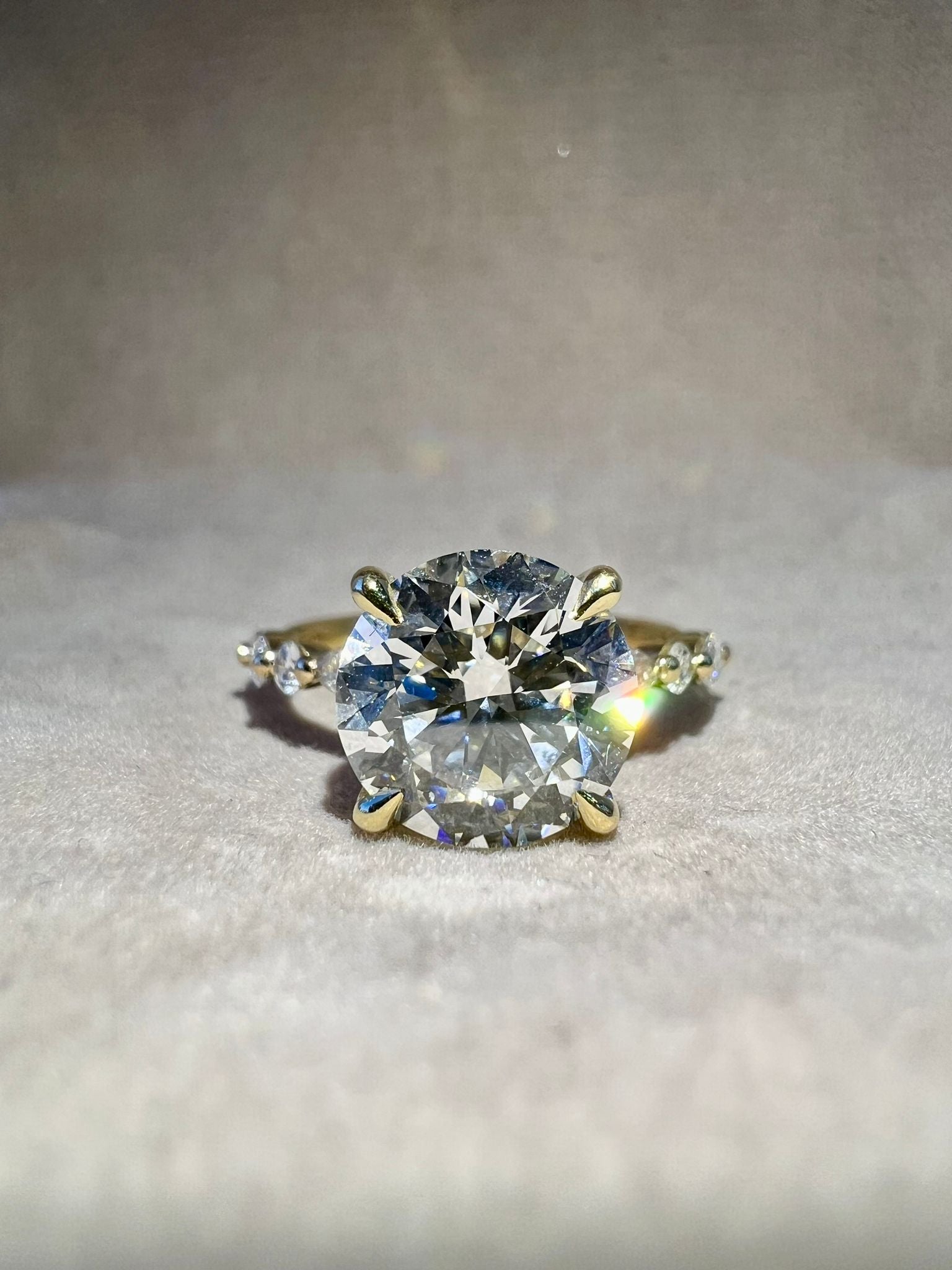 18k Yellow Gold 3.31ct F/VVS1 Round Lab Grown Diamond Engagement Ring