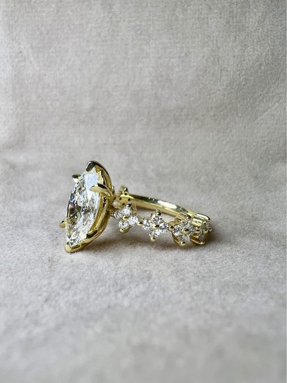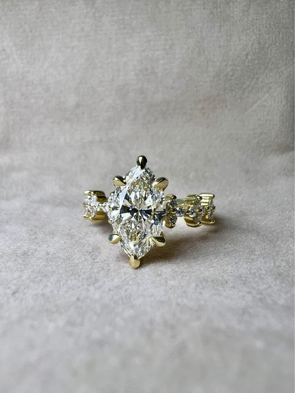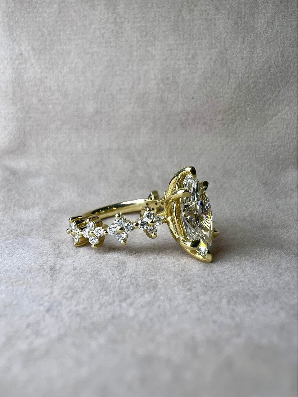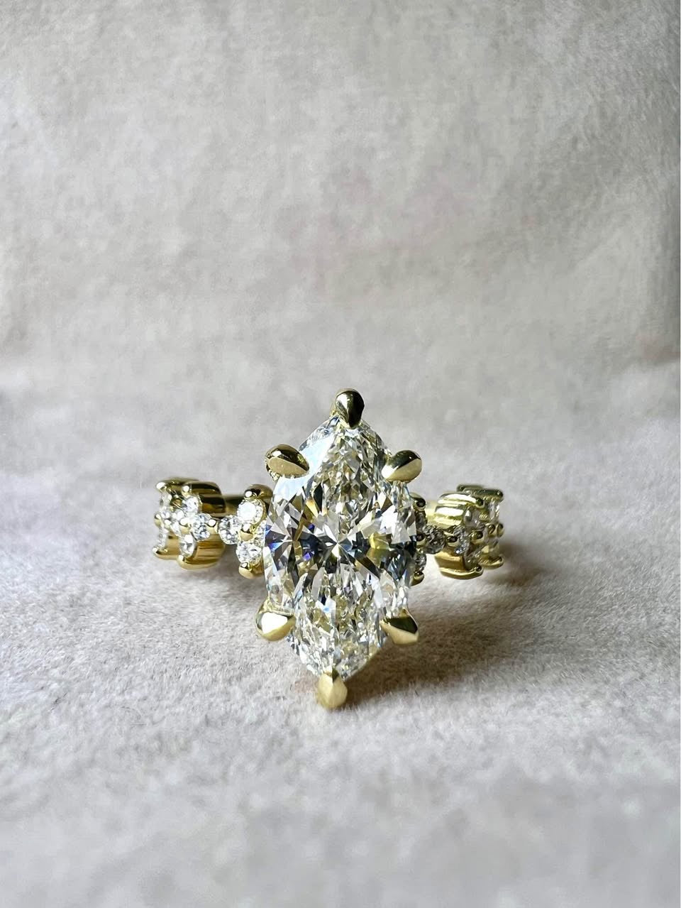 18K Yellow Gold Engagement Lab Grown Diamond Ring 2.10ct Marquise Cut F/VVS2
