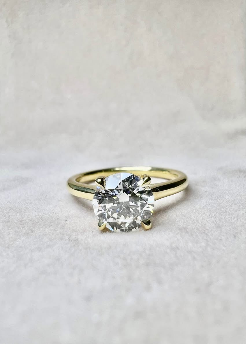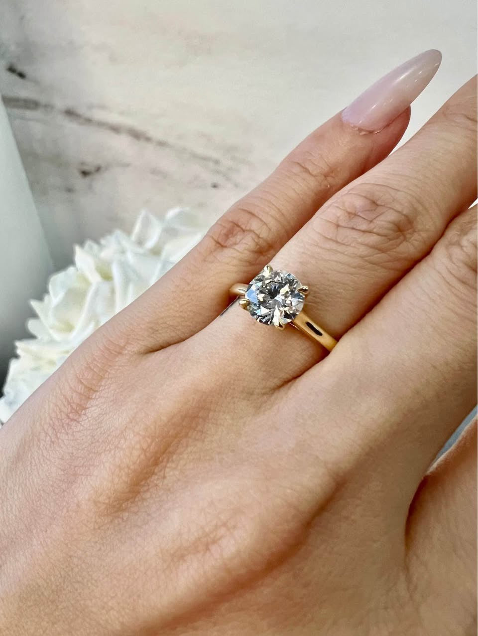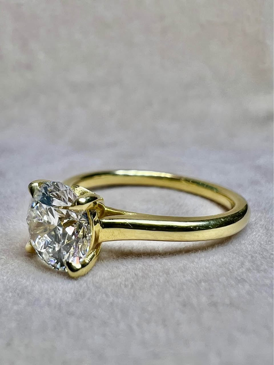18K Yellow Gold Engagement Ring Lab Grown Diamond Round 1.50ct D/VS1