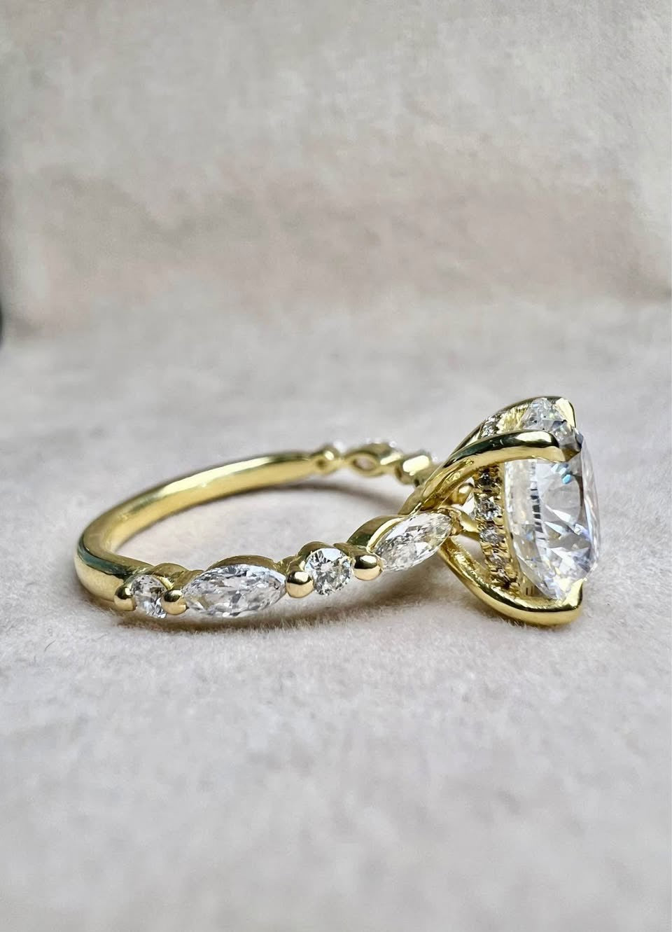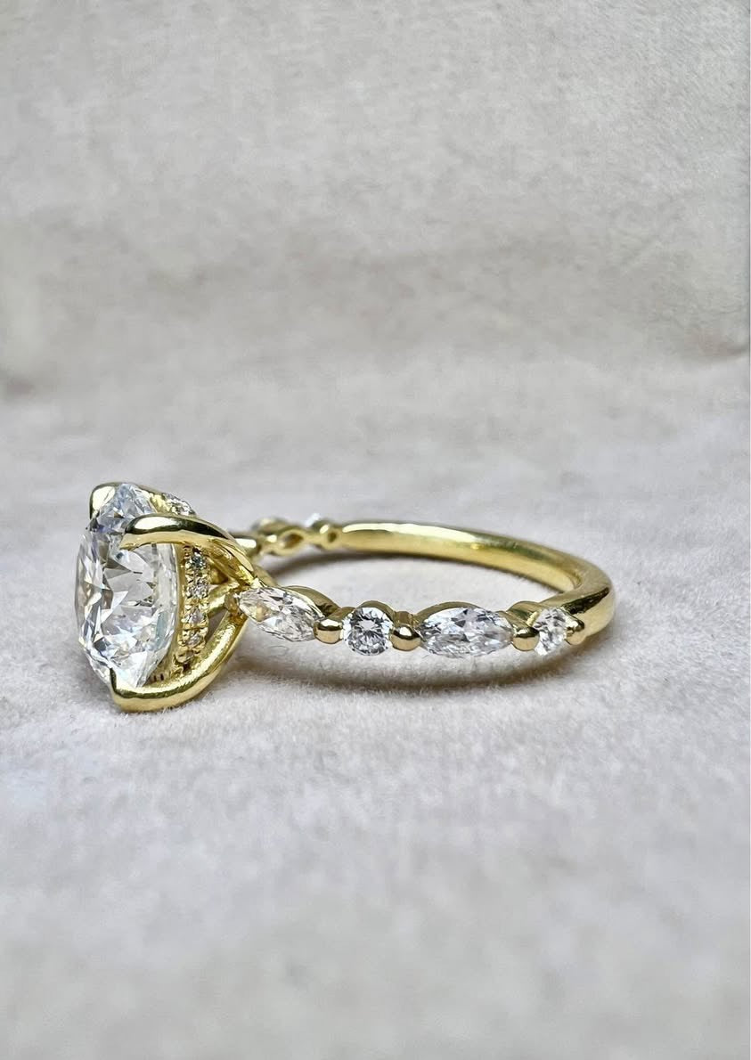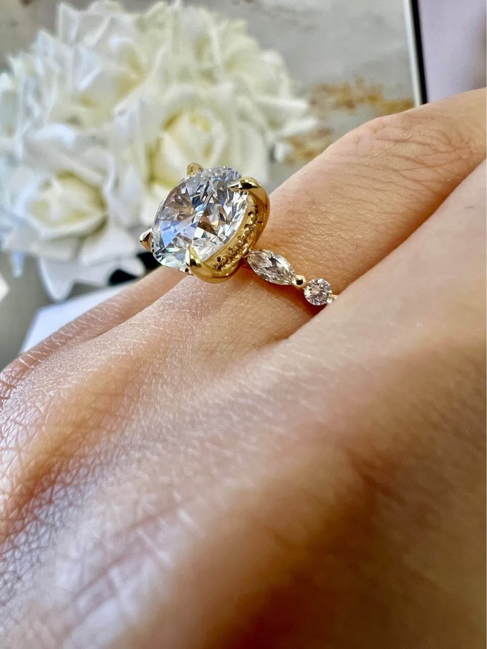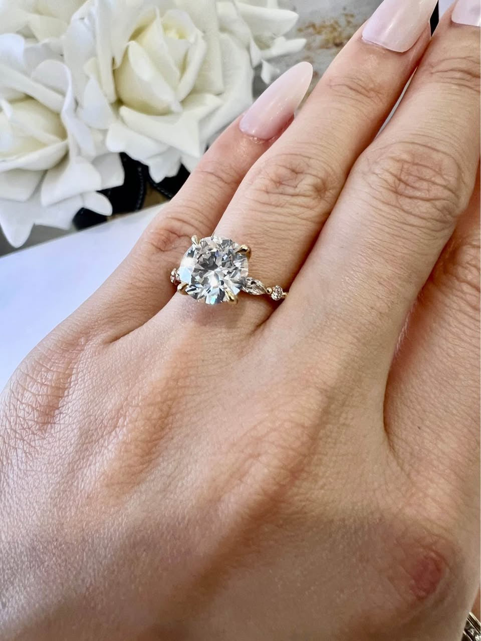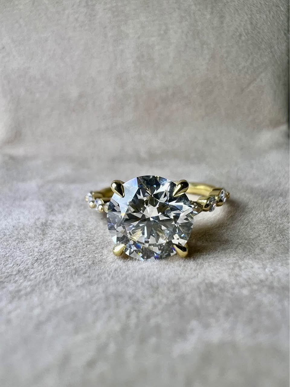 18K Yellow Gold Engagment Ring Lab Grown 3.31ct Round Brilliant Cut Diamond F/VVS1